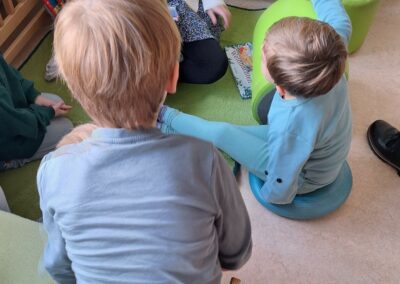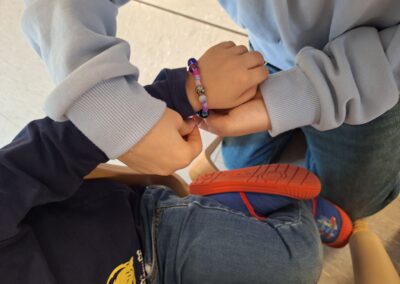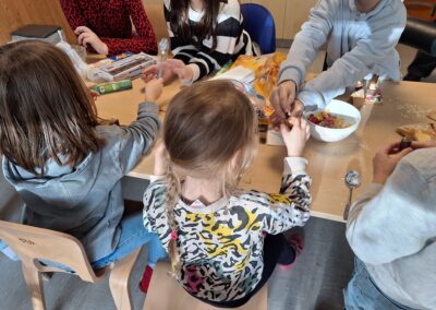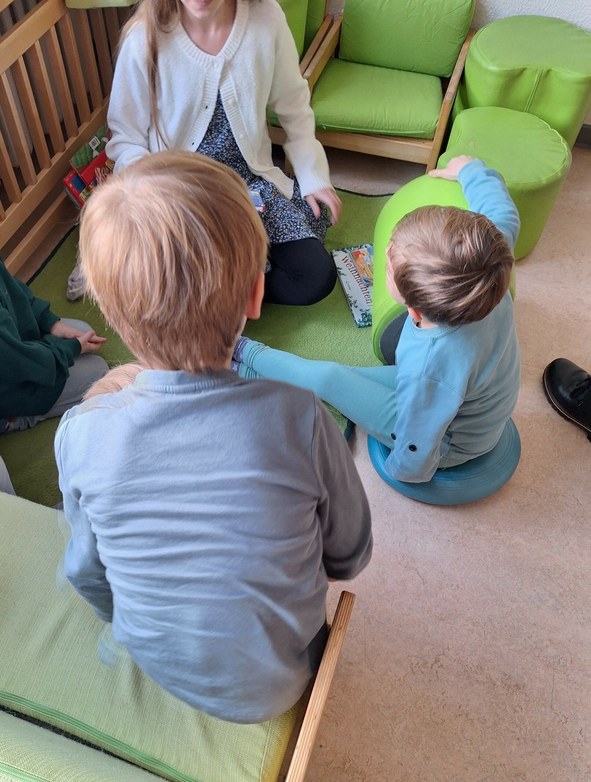 Es gibt sie nun schon fast ein Jahr – in der Kita AG gehen wir, Schüler:innen der Klassen 5 bis 8, zurück in die Kita – um Verantwortung zu übernehmen und unsere sozialen Kompetenzen zu stärken. Mit der AG besuchen wir alle zwei Wochen eine katholische Partner-Kita und bringen uns dort durch gemeinsames Spielen und Forschen, Lesen, Basteln und Toben mit den Kindern ein. Unsere letzten Highlights sind Armbänder, Windlichter und eigene Knete herstellen sowie Bewegungsspiele im Toberaum und Fußball auf dem Bolzplatz. Es macht total viel Spaß mit den 3-5-Jährigen Zeit zu verbringen und zu sehen, wie sehr sie sich freuen, wenn wir zu ihnen in die Kita kommen.