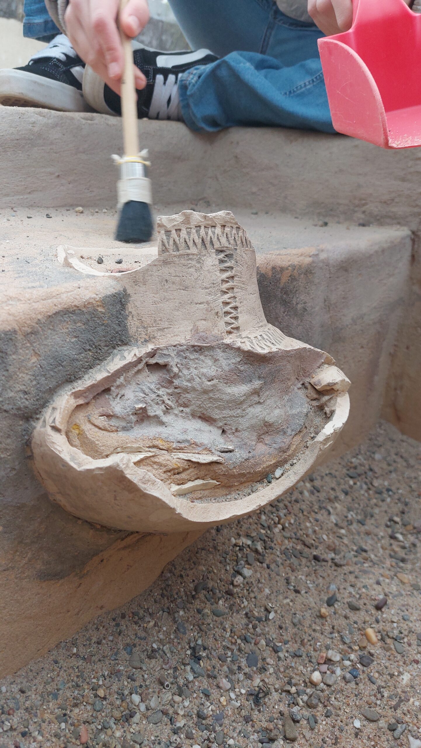 Kathrin mit ihrem Horn am Donnerstag, 23.5.2024 im Hildegardis-Gymnasium. Foto: Oliver Müller / Bistum Essen